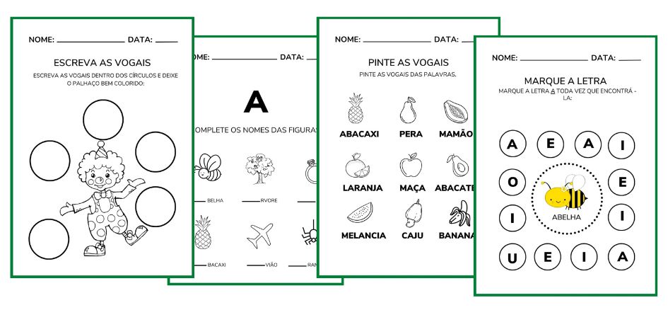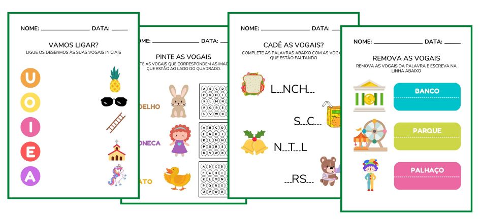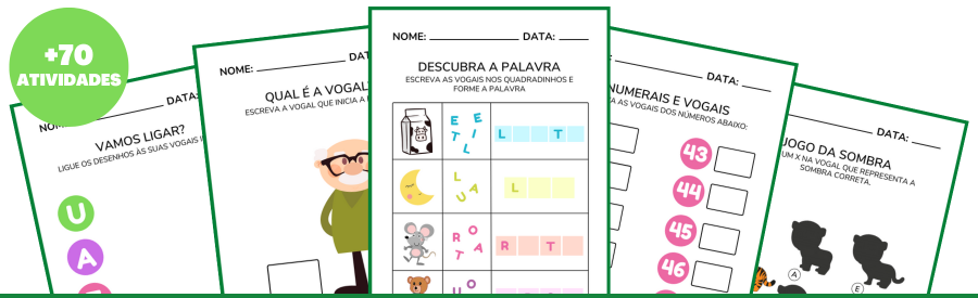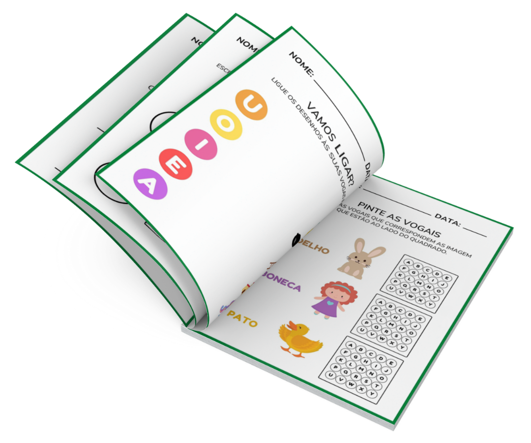 Através de exercícios lúdicos, as crianças irão desenvolver as habilidades de leitura e escrita enquanto aprendem a ouvir, pronunciar e reconhecer as vogais.
