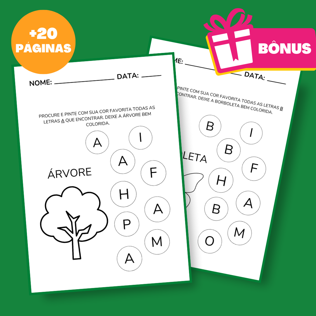Nosso Caderno de Atividades do Alfabeto apresenta centenas de atividades divertidas e educativas para ajudar as crianças a aprender e memorizar as letras do alfabeto e seus sons.