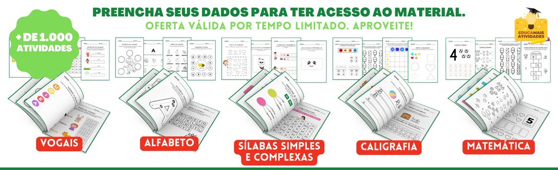 Material em PDF de alta qualidade, organizado e separado por assunto, pronto para imprimir e utilizar em sala de aula ou em casa.